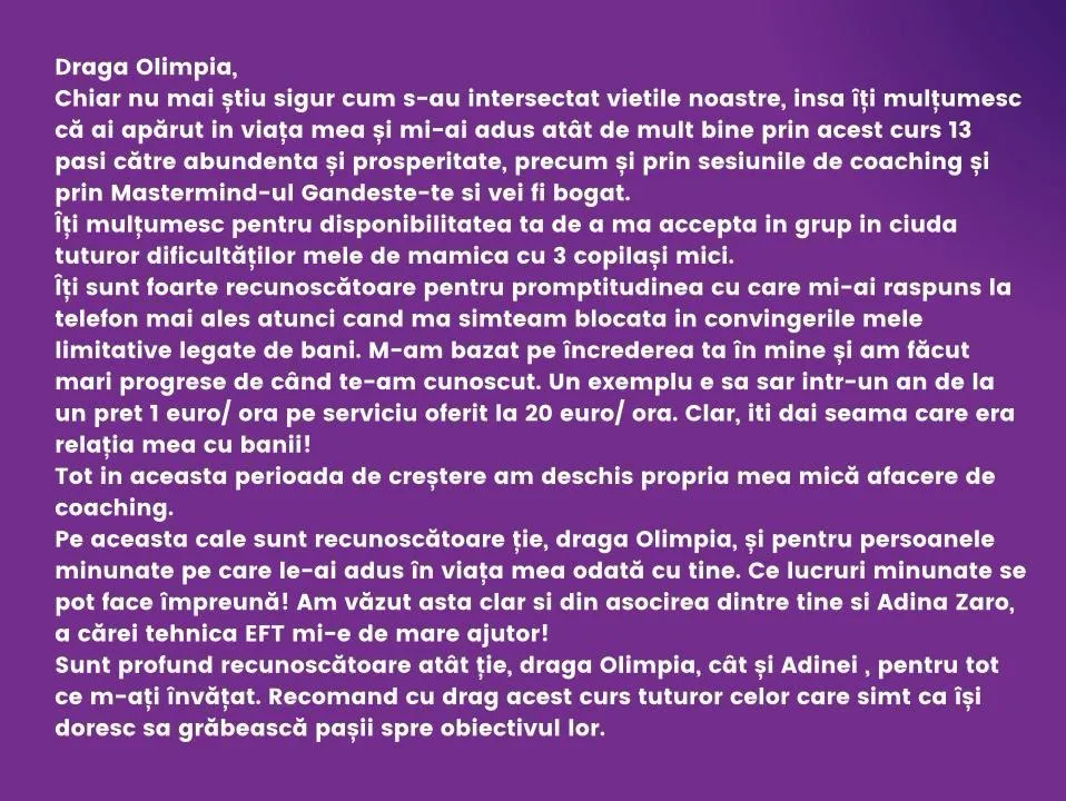 Tocmai din acest motiv, misiunea noastră este să te susținem și să te ghidăm să îți depășești blocajele emoționale, pentru a avea echilibrul emoțional necesar să iei decizii, să ai claritate, să știi ce vrei, să îți descoperi potențialul, să îți realizezi obiectivele și să-ți trăiești visul, pentru a fi împlinită și fericită.